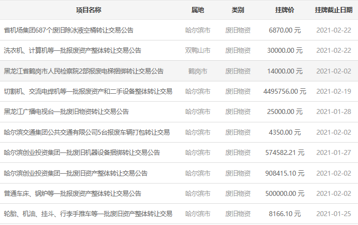 黑龍江聯(lián)交所為企業(yè)廢舊資產(chǎn)處置支招!對于體量較大、有再利用價值的“廢品”,企業(yè)可以在評估價的基礎上確定掛牌底價,低效無效“廢品”也可以依據(jù)2020年8月省國資委印發(fā)的《關于加快推進出資企業(yè)低效無效資產(chǎn)處置工作的通知》文件精神,以黑龍江聯(lián)交所詢得價格為依據(jù)確定掛牌底價,然后在黑龍江聯(lián)交所進行公開交易,充分發(fā)現(xiàn)買家、發(fā)現(xiàn)市場價值!