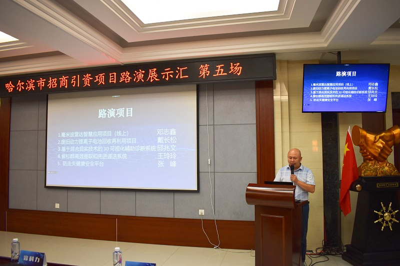 成都瑞達物聯(lián)科技有限公司的“毫米波雷達智慧應(yīng)用項目”、哈爾濱工業(yè)大學(xué)的“廢舊動力鋰離子電池回收再利用項目”、哈爾濱拓盟科技有限公司的“基于混合現(xiàn)實技術(shù)的 3D可視化輔助診斷系統(tǒng)”、東北林業(yè)大學(xué)的“紫杉醇高效提取和先進遞送系統(tǒng)”以及黑龍江檸檬科技有限公司的“防走失健康安全平臺”等五個項目進行了現(xiàn)場展示。